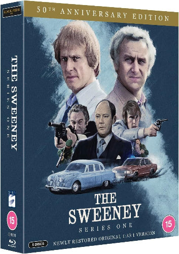 “Get your trousers on, you're nicked!" Fifty years ago, The Sweeney bust open the door and exploded onto TV screens, forever changing the face of TV police drama. Detective Inspector Jack Regan (John Thaw) and Detective Sergeant George Carter (Dennis Waterman) of the Flying Squad had only one rule when it came to taking down London criminals - forget the rules! Audiences were blown away by this new depiction of the police as flawed and realistic characters willing and ready to bend the rules if it meant keeping the streets safe. In this groundbreaking first season, featuring a new 2025 restoration on Blu-ray in the original broadcast aspect ratio, The Sweeney take on kidnappers, hijackers, bank robbers and worse. This definitive collector's boxset includes two versions of the original Armchair Cinema episode Regan' that launched the series together with a heist's worth of special features and bonus materials. Now watch it and shut it!